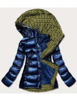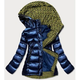 Tmavě modro/žlutá dámská prošívaná bunda s kapucí (xw817x)
