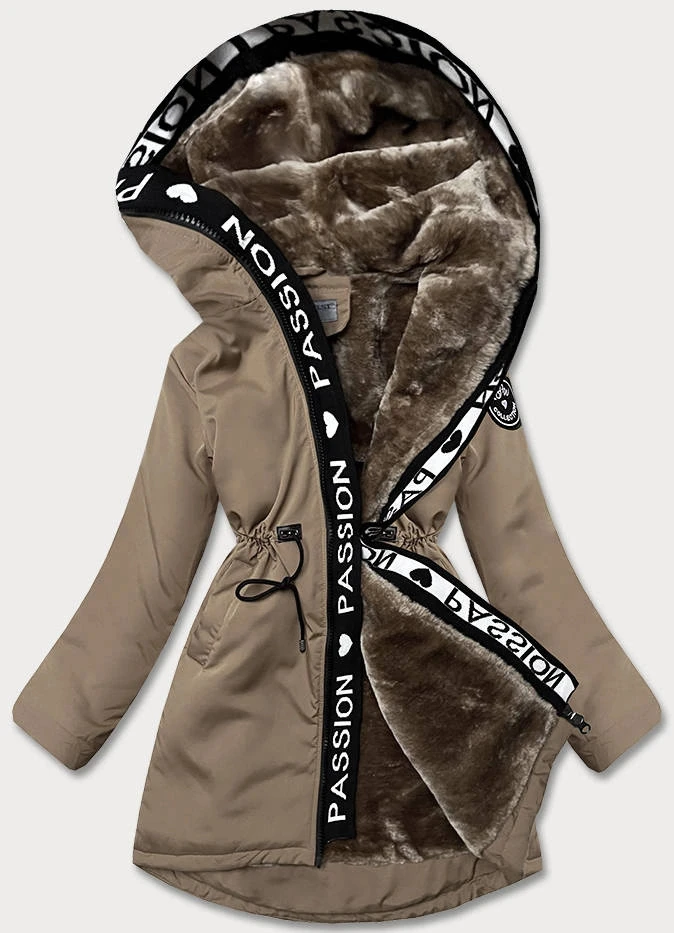 Béžová dámská bunda s kožešinovou podšívkou (B8115-12)