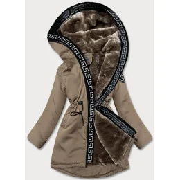 Béžová dámská bunda s kožešinovou podšívkou (B8116-12)