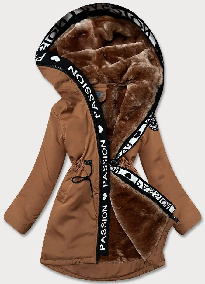 Dámská bunda v karamelové barvě s kožešinovou podšívkou (B8115-22)