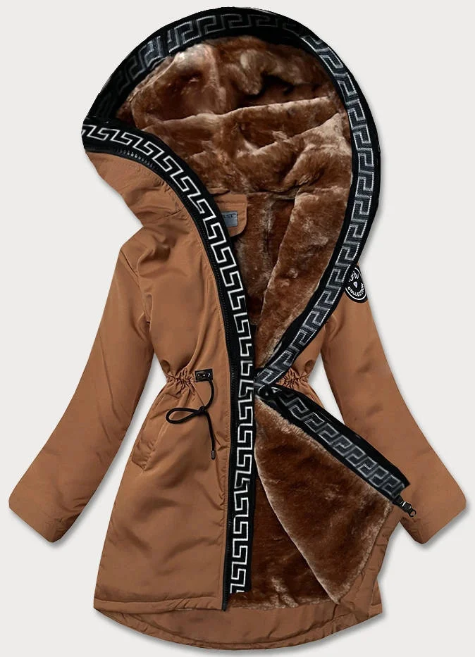 Dámská bunda v karamelové barvě s kožešinovou podšívkou (B8116-22)