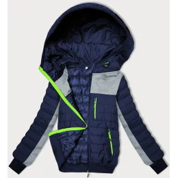 Tmavě modro-šedá dámská bunda z různých spojených materiálů (8M916-215)