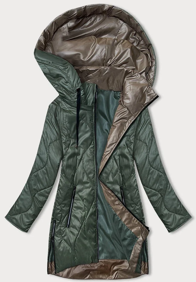 Tmavě zelená dámská bunda s odepínací kapucí (B8218-10)