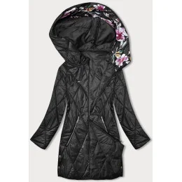 Černá dámská bunda s ozdobnou kapucí (B8215-1)