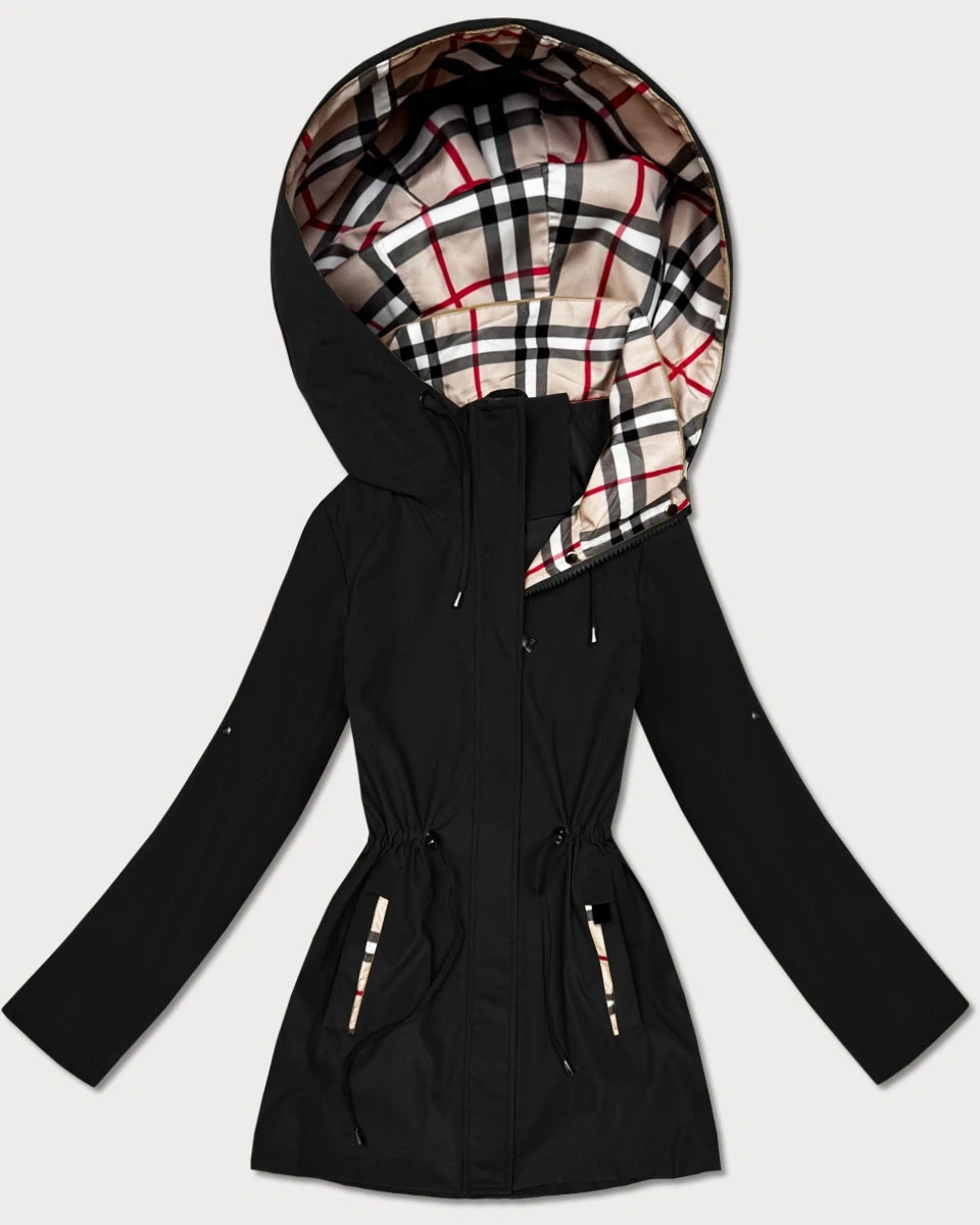 Damska kurtka z wykończeniem w kratkę Goodlookin czarna (KK60411-1#)