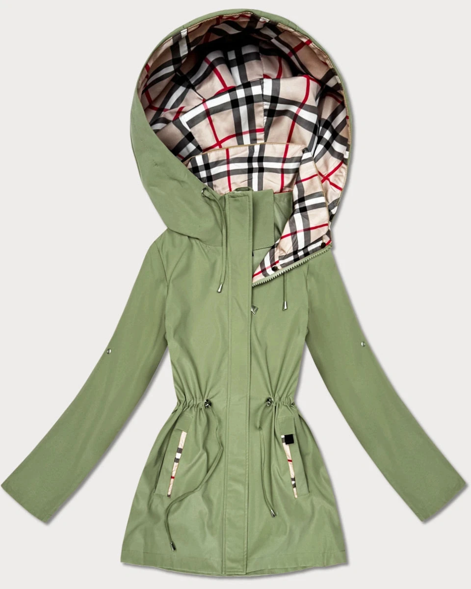 Damska kurtka z wykończeniem w kratkę Goodlookin khaki (KK60411-3#)