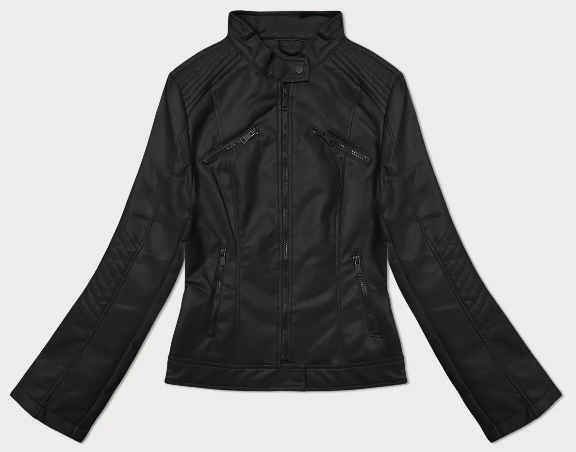 Černá dámská bunda z ekologické kůže se stojáčkem J Style (11Z8131)