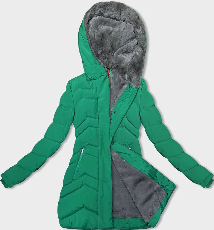 Zelená dámská zimní bunda s kožešinovou podšívkou (LHD-23023)
