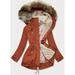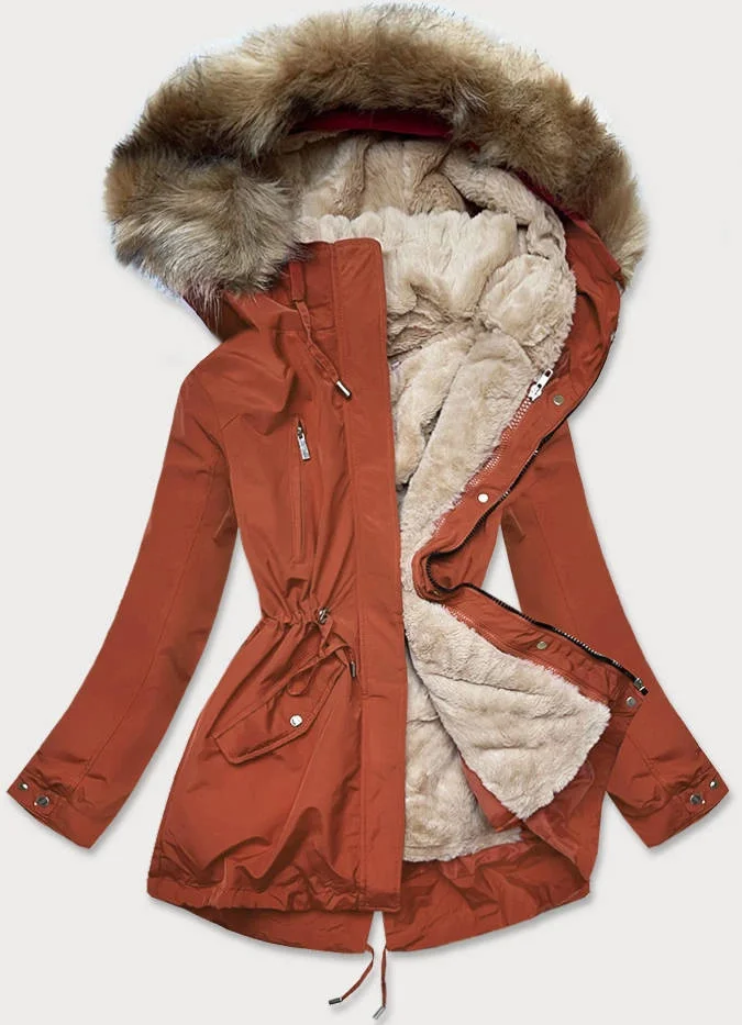 Rudo-světle béžová dámská zimní bunda s mechovitou kožešinovou podšívkou (w553)