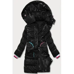 Černá dámská zimní bunda s barevnými vsadkami (CAN-594)