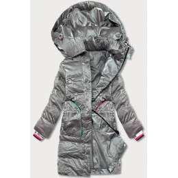 Šedá dámská zimní bunda s barevnými vsadkami (CAN-594)