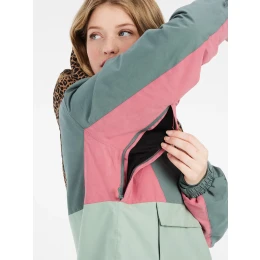 Polovzdorné manžety s háčkovým uzávěrem, ventilační zipy pod pažemi a kapsa typu kangaroo pomáhají udržet teplo, suchost a optimální teplotu.