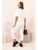 Dámská máslová souprava s krátkým rukávem a kalhotami ecru