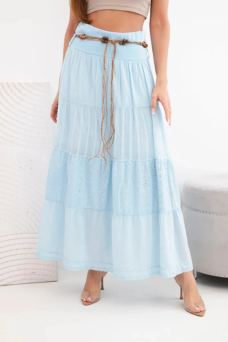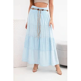 Dámská maxi bavlněná sukně s ažurovou výšivkou a elastickým pasem modrá