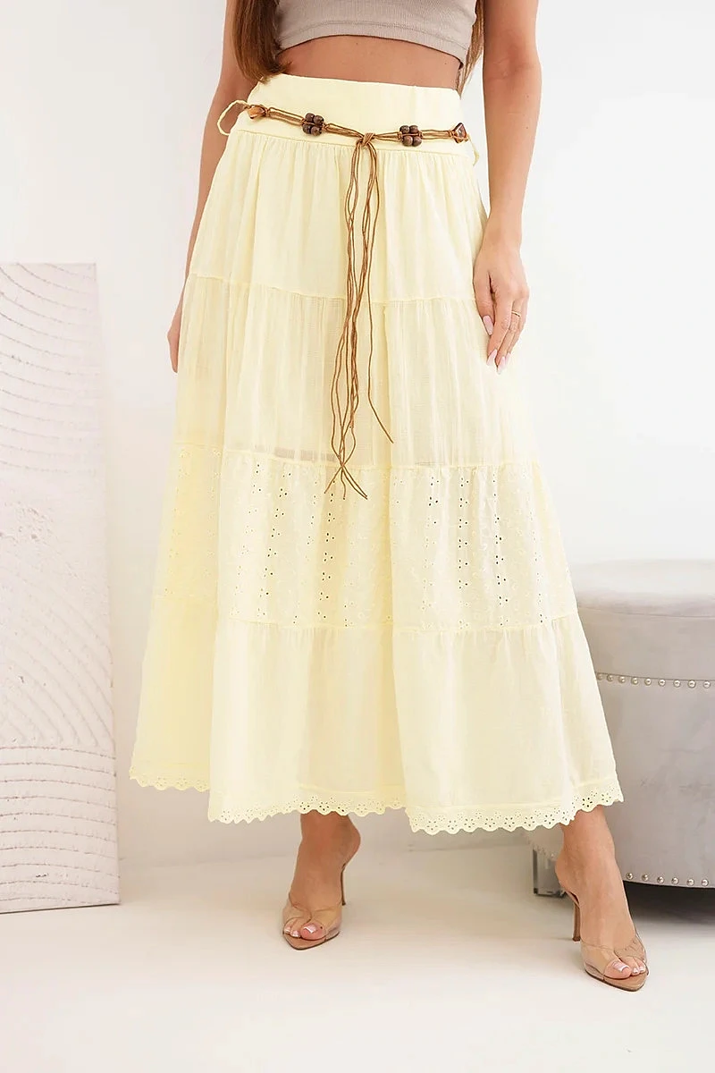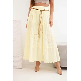 Dámská maxi bavlněná sukně s ažurovou výšivkou a elastickým pásem žlutá