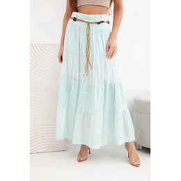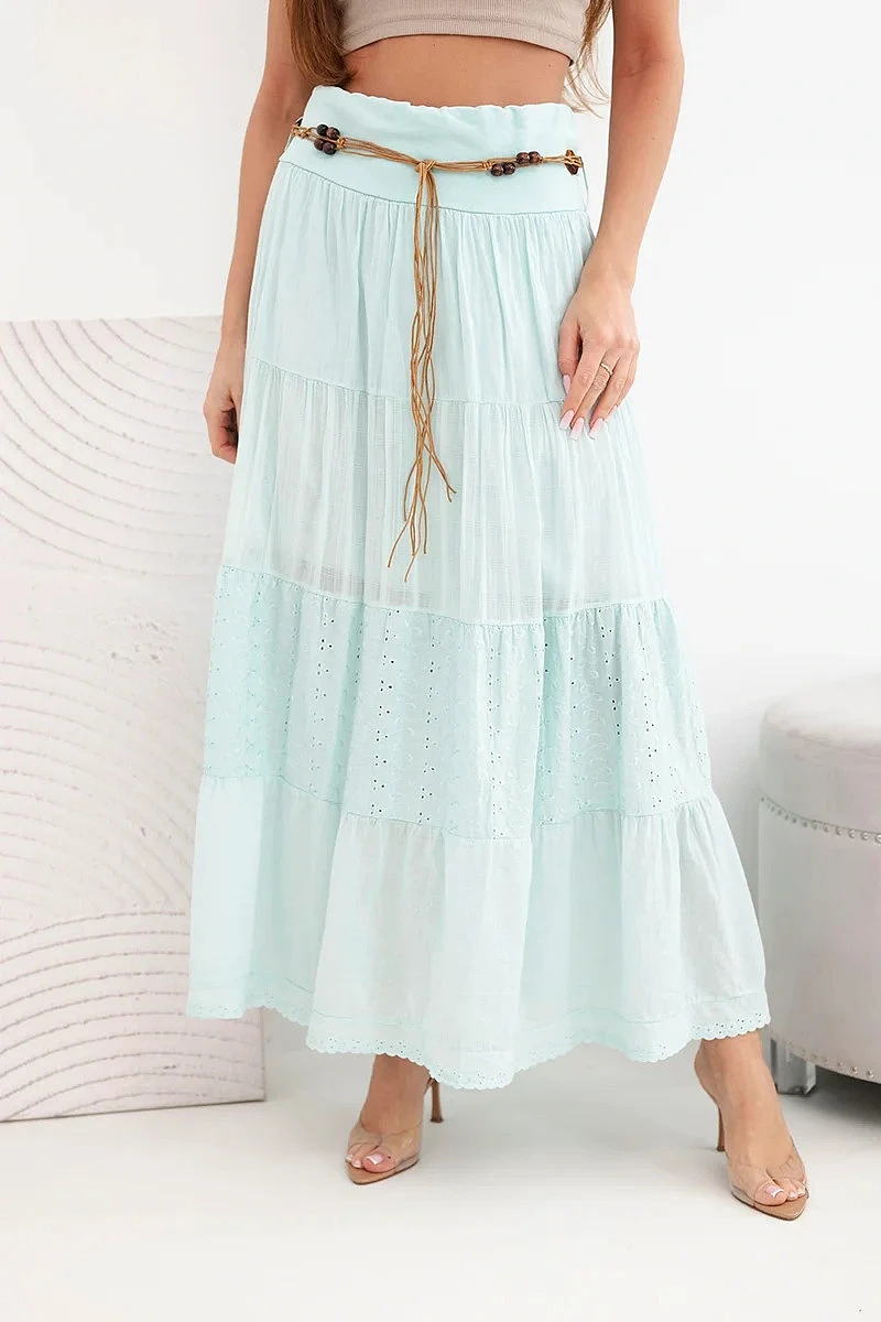 Dámská maxi bavlněná sukně s ažurovým vyšíváním a elastickým pasem mátová