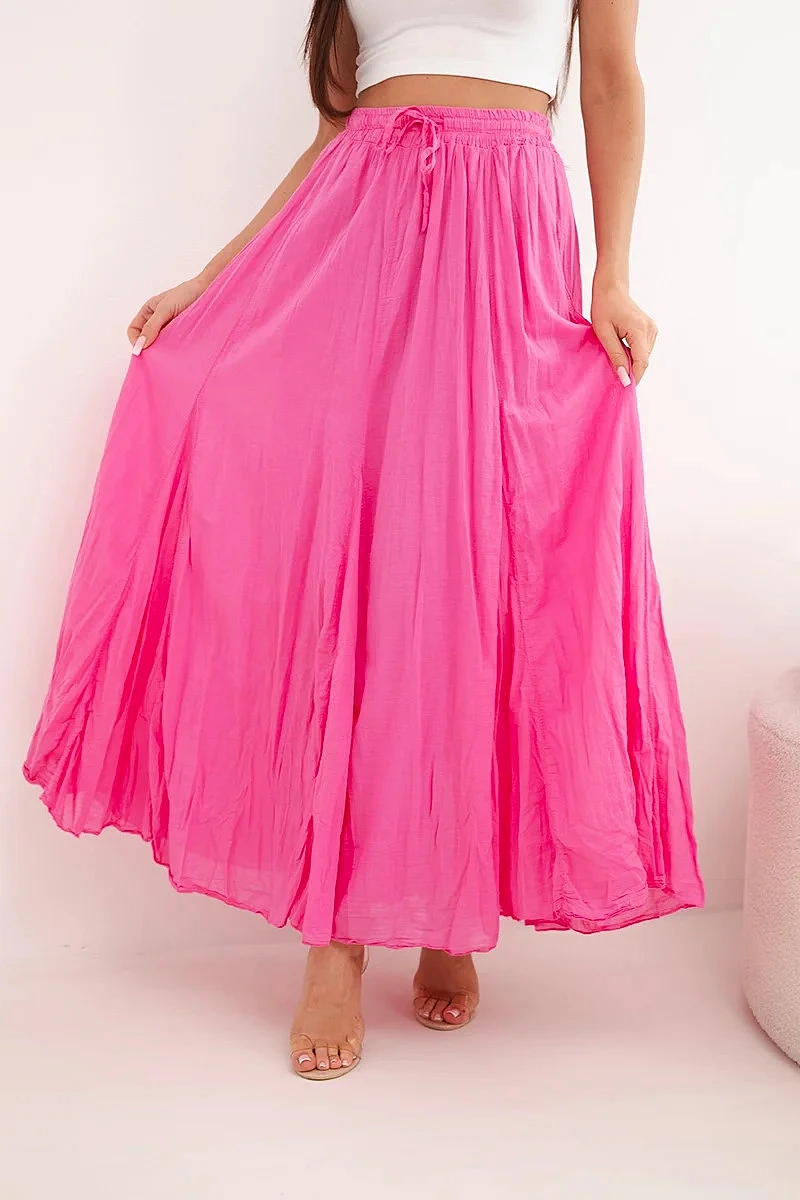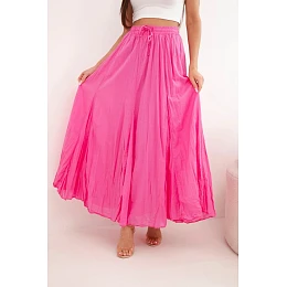 Vzdušná dámská maxi sukně je ideální volbou pro teplé dny. Model vyrobený ze 100% bavlny je lehký, prodyšný a velmi pohodlný na nošení. Jemně nařasený materiál dodává sukni módní, přirozený charakter a při pohybu se krásně vlní.