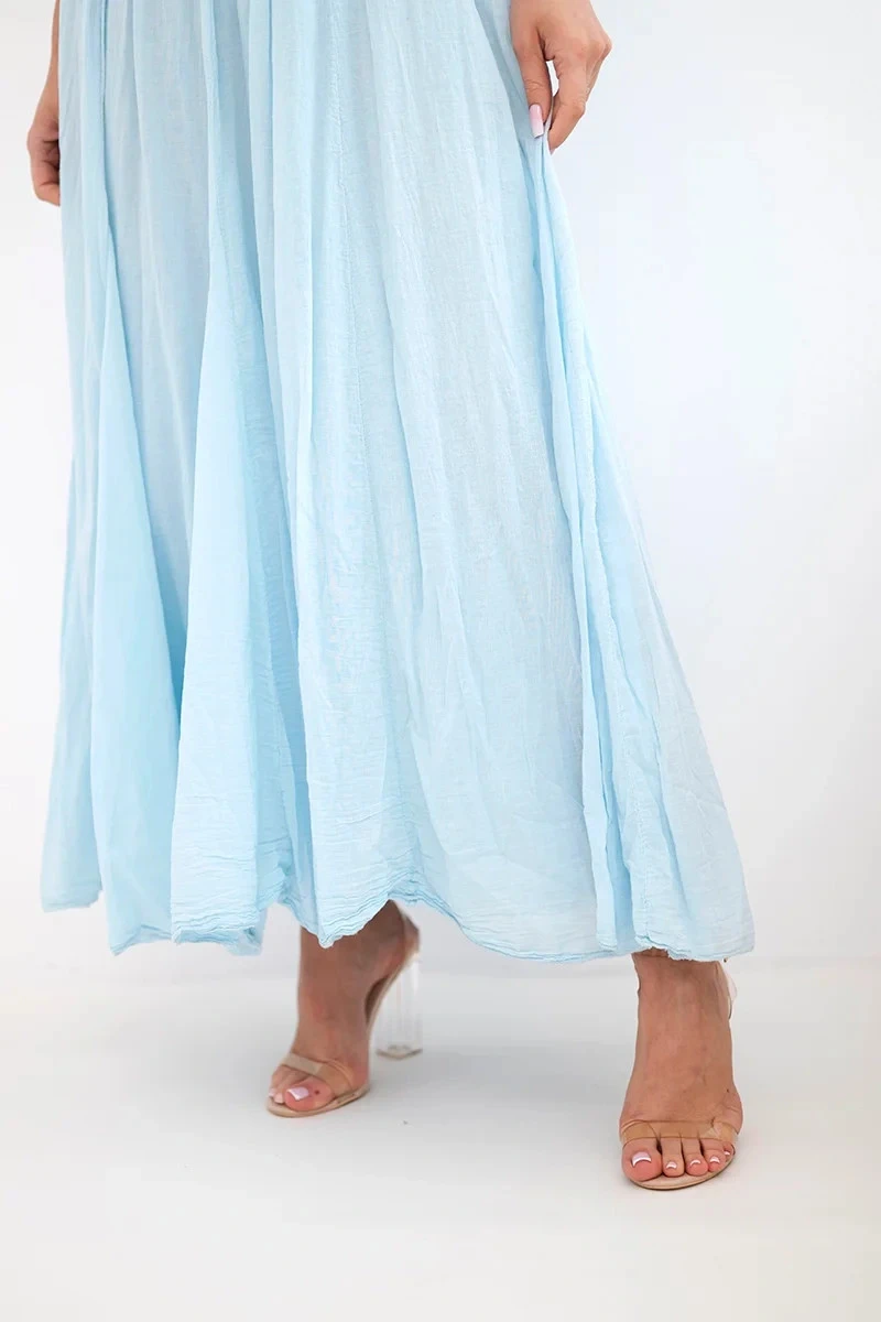 Dámská maxi bavlněná sukně s gumičkou v pase modrá