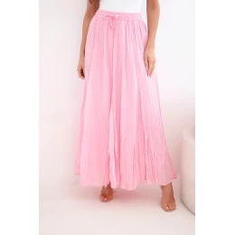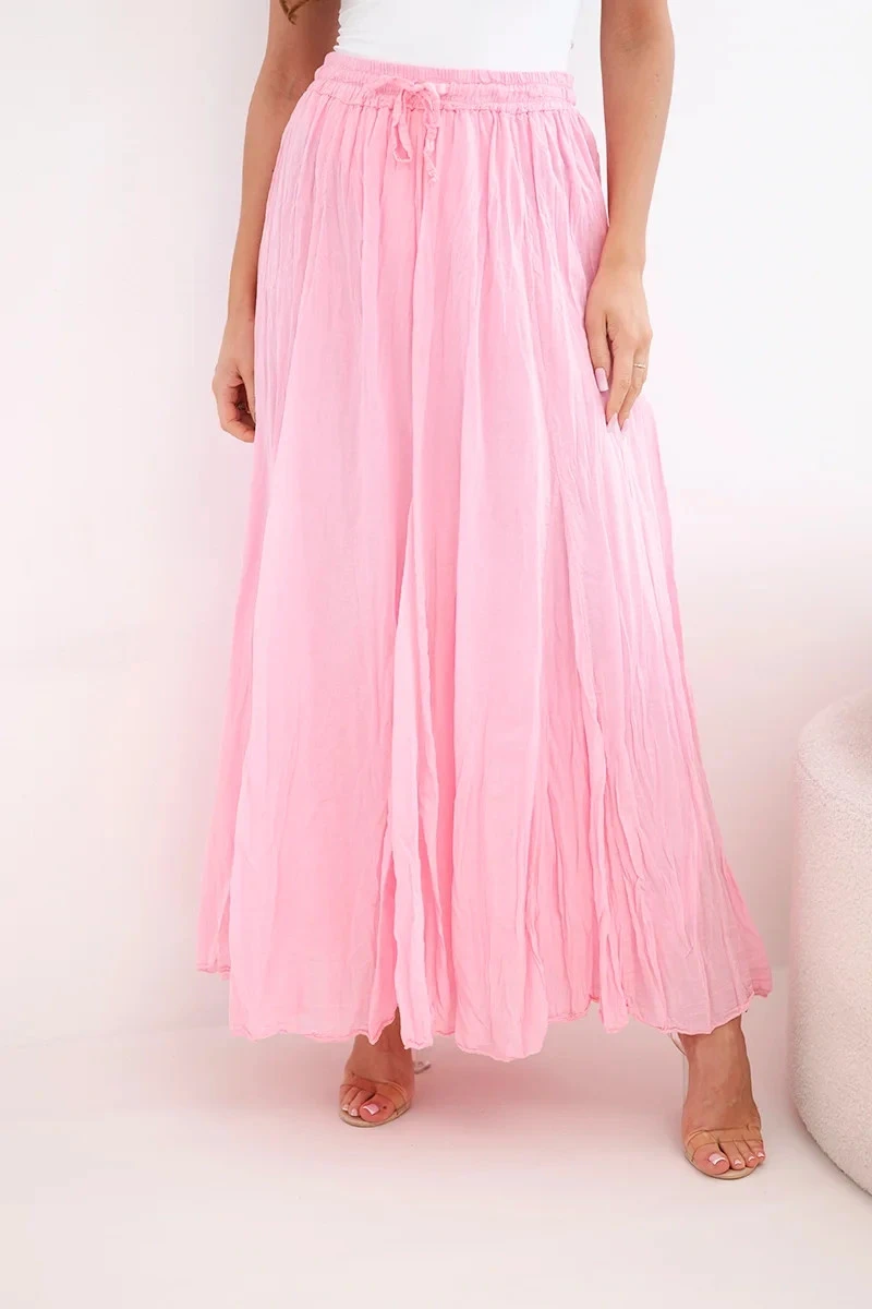 Dámská maxi bavlněná sukně s gumou v pase bonbónově růžová