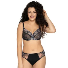 Košíčky modelu jsou vyrobené ze síťoviny s barevnými květy a jsou zpevněné kosticemi. Vrchní linii modelu tvoří efektní výšivka s květinovým motivem s lesklou přízí. Vnitřní strana košíčků je podšitá vrstvou síťoviny. Ramínka je možné nastavit, ale nelze je odepnout. Šířka ramínek závisí na velikosti a rozměru podprsenky. Model stabilně nadnáší poprsí, poskytuje mu oporu a dodává mu pěkný přirozený tvar. Podprsenka má střih a konstrukci typu 1130.