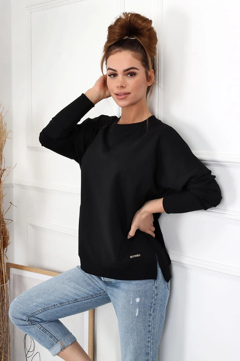 Mikina je typu "oversize" a má spuštěnou linii ramen.
