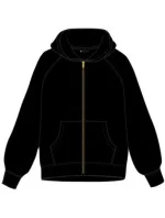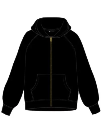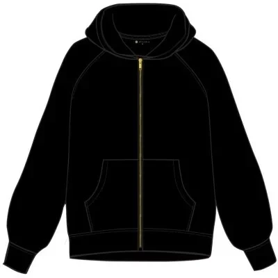 Přední část mikiny zdobí zlatý zip a dvě prostorné kapsy, ideální pro uložení drobností nebo zahřátí rukou.