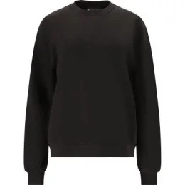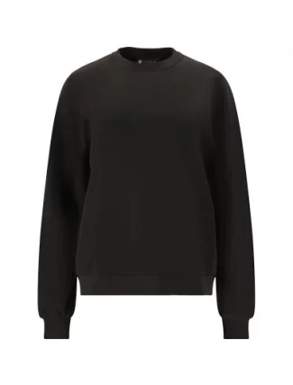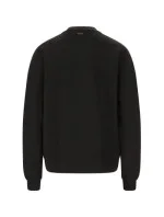 Mikina z měkkého materiálu má klasický střih s kulatým výstřihem a dlouhými rukávy, které jsou zakončeny širokými žebrovanými manžetami.