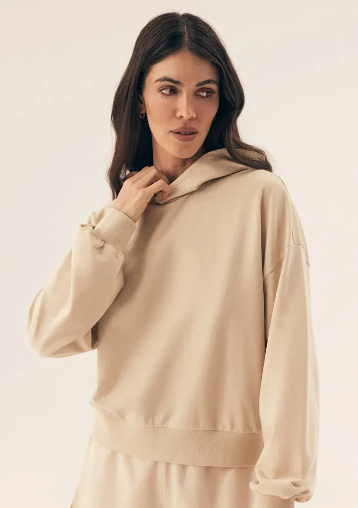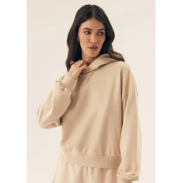Pohodlí a styl v jednom – přesně to nabízí tato dámská mikina od značky ESOTIQ. V jemném béžovém odstínu působí elegantně a snadno ji zkombinuješ s jakýmkoliv outfitem. Mikina má pohodlnou kapuci, která ti poskytne útulné zázemí v chladnějších dnech. Volnější střih s mírně spadlými rameny a žebrovanými lemy na rukávech i spodním okraji zajišťuje moderní vzhled a příjemné nošení. Díky měkkému a příjemnému materiálu si užiješ komfort nejen doma, ale i při procházkách venku. Minimalistický design bez zbytečných detailů dělá z této mikiny univerzální kousek, který nesmí chybět v žádném šatníku.