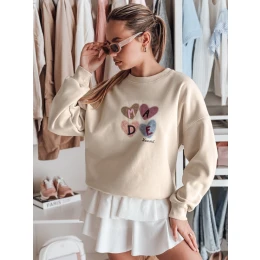 Dámská mikina nadměrné velikosti se srdíčky MADELIN cappuccino FashionStreet BY1462