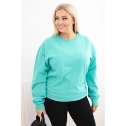Dámská mikina Plus Size bavlněná basic s kulatým výstřihem tmavě mátová
