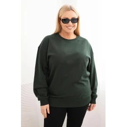 Dámská mikina Plus Size bavlněná basic s kulatým výstřihem tmavě zelená