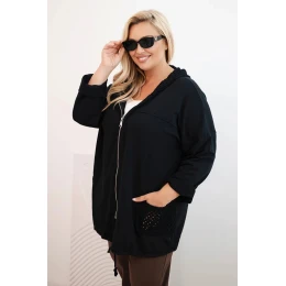 Dámská mikina Plus Size bavlněná oversize s dlouhým rukávem černá