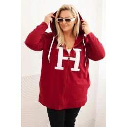 Dámská mikina Plus Size bavlněná s kapucí a velkým písmenem H bordová
