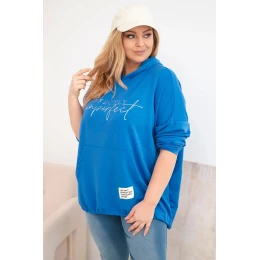 Dámská mikina Plus Size s kapucí a potiskem chabrová