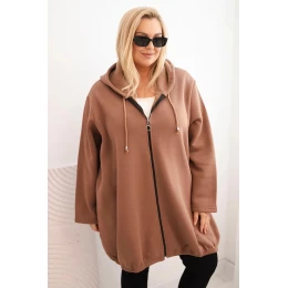Dámská mikina Plus Size zateplená s kapucí a zipem hnědá
