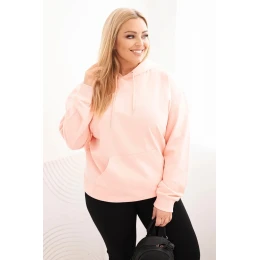 Dámská mikina s kapucí a klokaní kapsou Plus Size z bavlny lososová