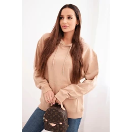 Dámská mikina s kapucí a klokaní kapsou z bavlny camelová