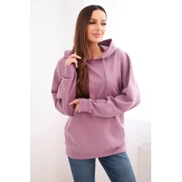 Dámská mikina s kapucí a klokaní kapsou z pletací bavlny tmavě růžová