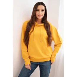Dámská mikina s kapucí a klokaní kapsou z pletené bavlny hořčicová