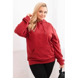 Dámská mikina s kapucí a klokankou Plus Size z bavlny bordová