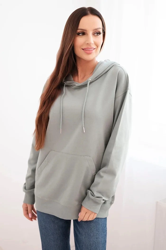 Dámská mikina s kapucí a klokankou z bavlny tmavě mátová