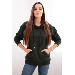 Dámská mikina s kapucí a klokankou z bavlny tmavě zelená