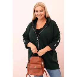 Tato dámská mikina plus size je vynikající volba pro ženy, které si cení pohodlí a módního, volného stylu. Vyrobena z měkké směsi polyesteru, viskózy a elastanu, skvěle sedí na postavě a neomezuje pohyb. Model s rozepínáním na zip a dekorativním kroužkem u zipu dodává moderní charakter, a kapuce zvyšuje funkčnost. Na rukávu se nachází módní potisk ve streetwear stylu, který přitahuje pozornost a podtrhuje sportovní styl mikiny.