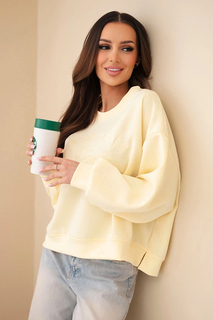 Dámská mikina s výšivkou volného střihu máslová žlutá