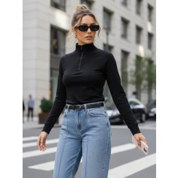 Dámská mikina ve vypasovaném střihu s praktickým zipem pod krkem. Stojatý límec zklidňuje výstřih a chrání krk v chladnějších dnech. Elastický úplet podporuje volnost pohybu a pohodlné usazení na siluetě. Model je ideální pro každodenní outfity, kdy je důležité pohodlí a elegantní provedení.