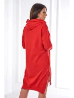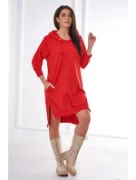 Dámské šaty NUMOCO jednoduché s dlouhým rukávem viskózové krátké měď - Červená - Numoco