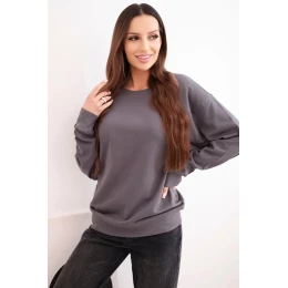 Dámská mikina z bavlny basic s kulatým výstřihem grafitová
