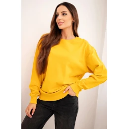 Dámská mikina z bavlny basic s kulatým výstřihem hořčicová