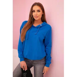 Dámská mikina z bavlny s kapucí a kapsami chabrová