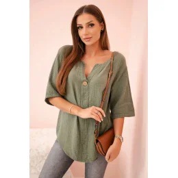 Dámská mušelínová košile s knoflíkem khaki